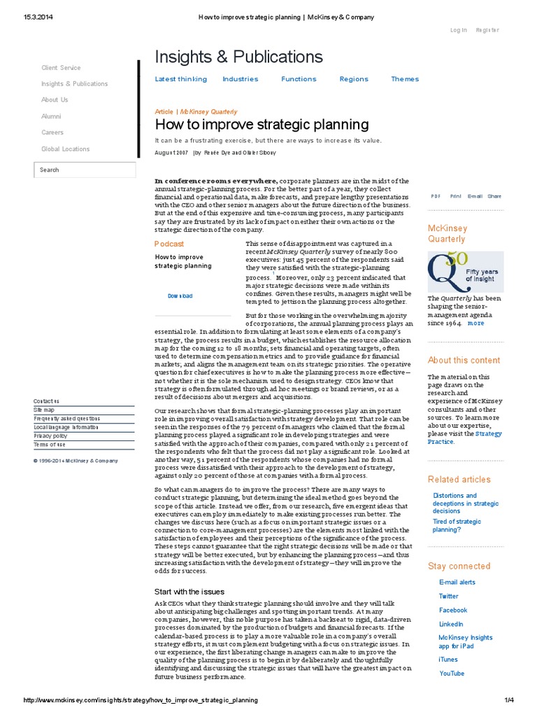 Web article | mckinsey quarterly how to improve strategic planning it can be a frustrating exercise, but there are ways to increase its value.
